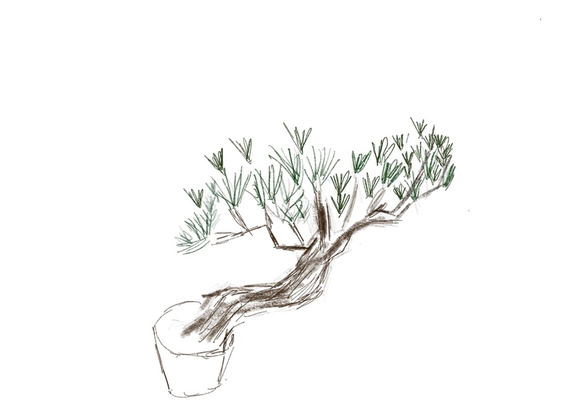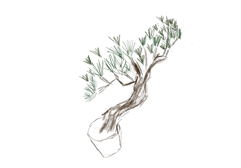 Thank you for giving me the opportunity to practice design. I am starting to use the iPad Pro with the Apple pen to play with design ideas. Pretty cool. The software I am using is called Procreate, it is excellent. Even allowing to produce a time lapse of the drawing… mine below is messy as I didn’t draw the layers in the right order and I also corrected them later (layers for the trunk, old 2ry branches, new 2ry branches, old pot, new pot, old foliage, new foliage, etc)…