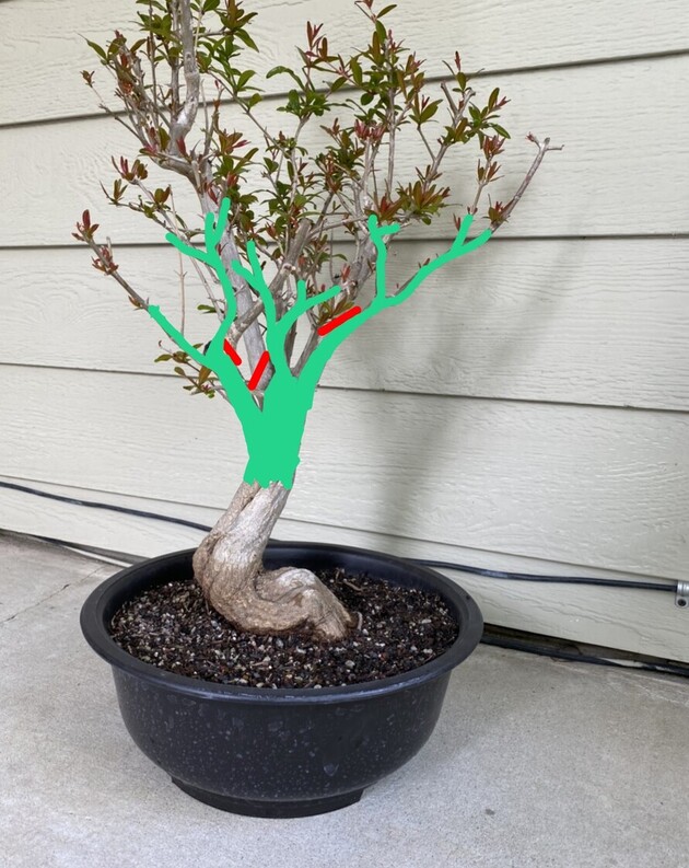 Lovely trunk base and good potential to develop something interesting.