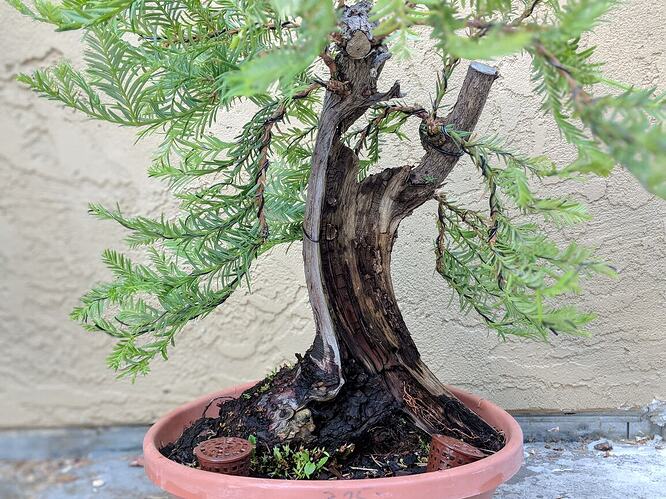 Hi everyone! I was recently lucky enough to pick up a collected redwood from the Mendocino Coast Bonsai guys (Bob, specifically) at the REBS 2018 show. It is the first unstyled redwood I’ve purchased, and it is a doozy. I was hoping everyone would provide their opinions on what the right direction would be just in case I was missing some awesome opportunity/direction.