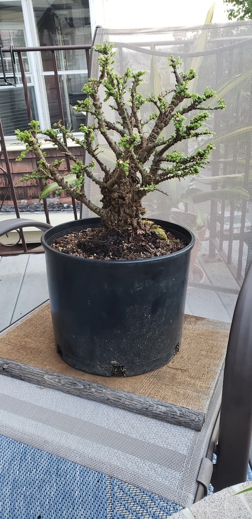 I purchased a similar tree from Bonsai NW last year and repotted it this spring to get it out of the oversized container and be able to have a decent view of the structure. Even though it is growing like weed (the picture is from 5/21/20) all I have removed are some very long shoots for cuttings (1 of 6 are still alive). I plan to do some cut back in late summer so I can better see the structure, but will wait until late winter to style it.