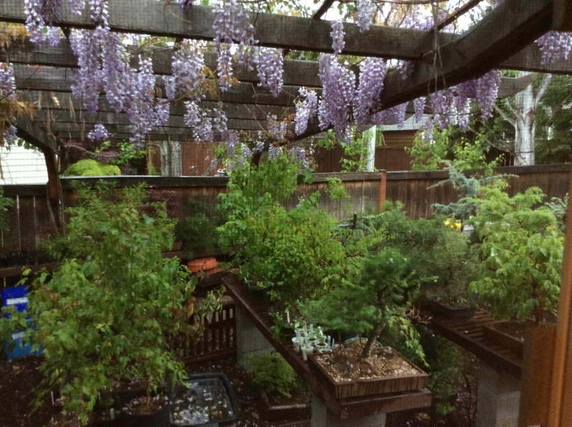 I grow wisteria on my pergola. It gets a little two shady at times, but the smell is intoxicating when it blooms. It grows like a weed here in the Spokane which is further north and colder than its typical range. I am sure it would not protect from softball sized hail, but it does a nice job slowing down the smaller stiff we get.