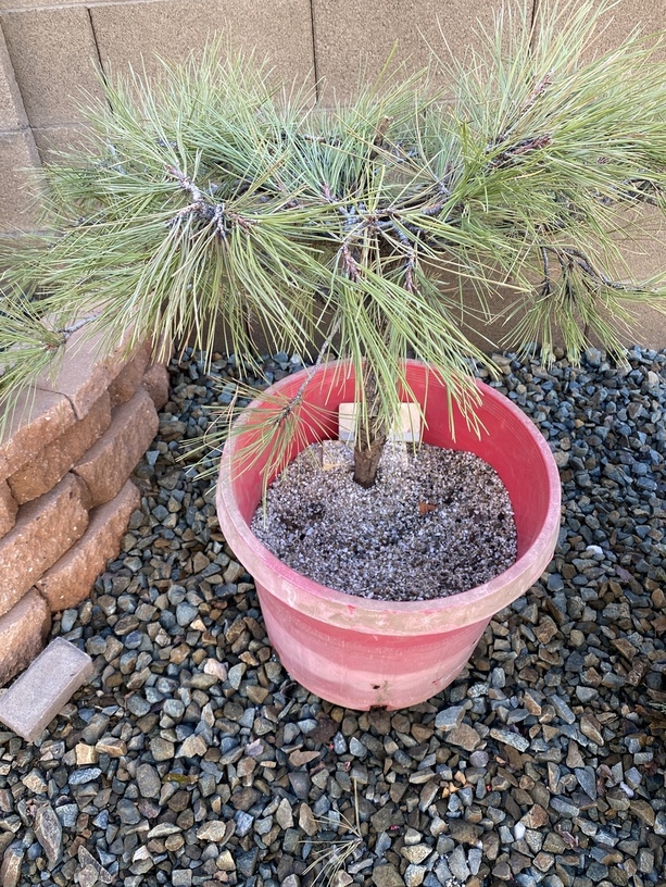 I received as a Thanksgiving gift these ponderosa pines collected by my landscaper, who obtained a permit to collect, in the Flagstaff national forest. He collected using his landscaper’s knowledge and obtained most of the root ball and placed and packed each tree into a plastic container. The pot was filled with dirt up to the first internode, but the root ball is only taking up the bottom third of the container. He then used super thrive and watered for a week and dropped them off.