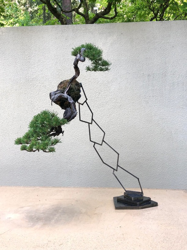 I immediately thought of this setup I saw online a while ago. Apparently itās from the āAvant Gardenā exhibition at the Pacific Bonsai Musuem.