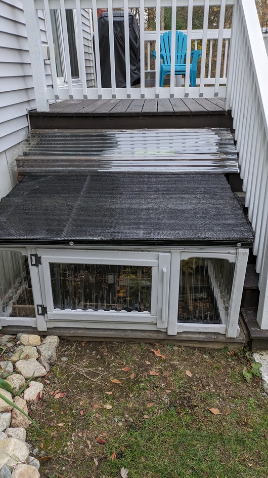 I originally made a small sink in cold frame that sits next to the stairs and can be seen from under the deck at eye height. Added some pictures in case it gives anyone ideas for their space. this year it is more functional than pretty I will tackle the aesthetics next year if it works out well.